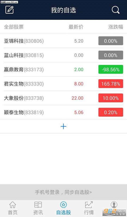 自选股:加入自选的股票有状态显示了
