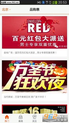 品购惠app是一款专为喜欢逛街的用户打造的商家活动发布软件,用户可以在这里找到自己身边的各大商场,添加关注之后每当商场有优惠活动就会智能通知你,快去抢购吧!