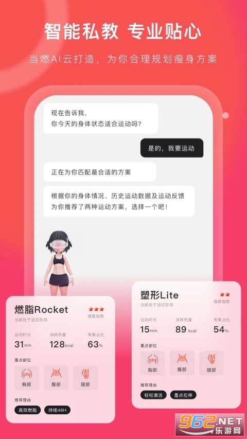 ‘如果人人都可以坚持健身’。陪伴式云端私人教练;科学的运动计划;轻松解决饱餐后的负罪感;陪伴运动游戏;体能测试;减脂利器