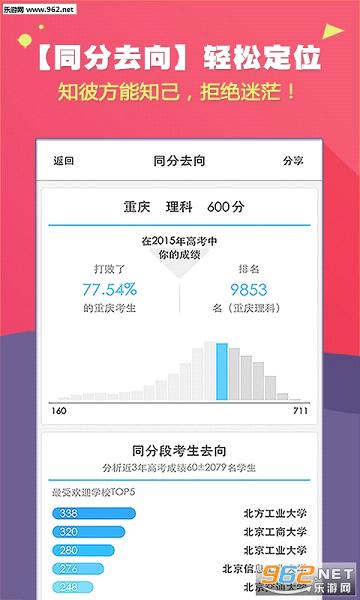 3、全方位立体分析,同分考生去向,根据职业选专业,让你不浪费一分选到好的大学!