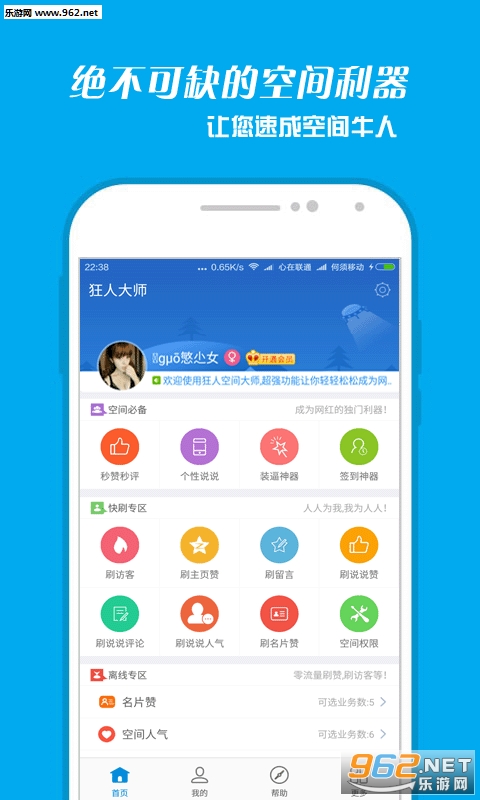 《狂人大师app》是一款QQ空间助手类手机应用,是QQ空间玩家必备的神器。支持空间说说点赞、说说评论、留言板留言、发iphone说说、图片说说、增加QQ空间人气、发说说、自定义手机标识、删说说、删留言等功能。
