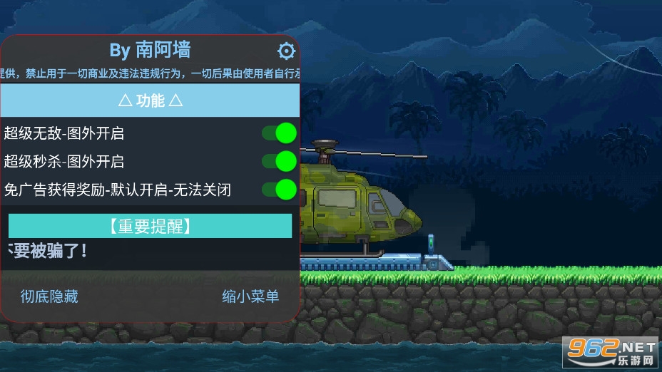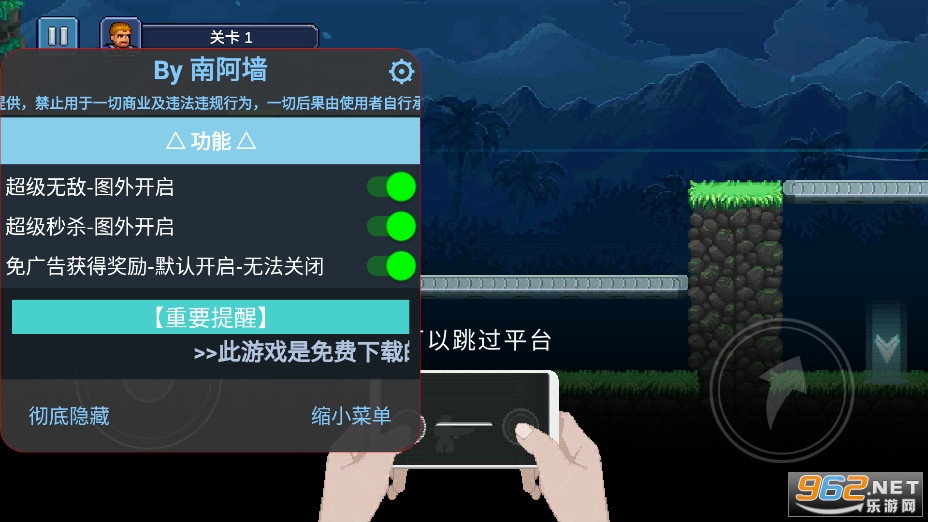 趣味的横版像素射击游戏,玩家可以在玩耍的过程中学习各种技能,灵活控制角色移动跳跃去战斗,游戏已修改,可以自由的开启各种功能,比如无敌、秒杀等,喜欢的朋友可以下载试试。