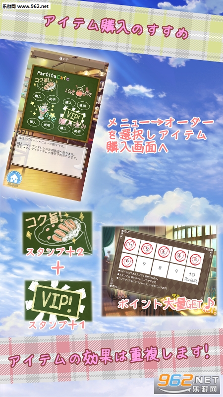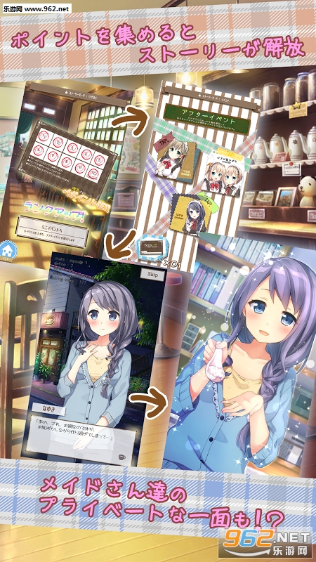 在咖啡厅工作的4为女仆,一起进行余款的猜拳决胜负。胜负后存储的点数可以用于看故事,和全国玩家比赛,还有可以会看在故事中入手的CG,等等模式。