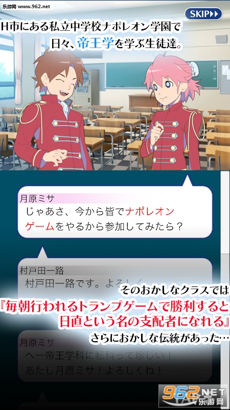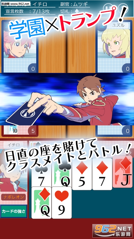 《日直争夺拿破仑学园》是一款日式风格的卡牌对战手游,来自D.H Inc推出新作,以扑克牌元素为主,玩家作为私立中学的一名学生,将通过每次的早会中的扑克牌大战获得校园的支配权力,可指挥其他学生完成相应的任务。