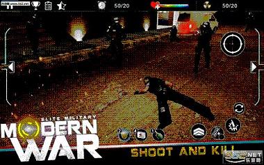 《精英战争精英:现代战争》(Elite Military)是一款3D枪战类手游。以现代战争为题材,并采用3D引擎打造,其画面非常清晰精美。游戏中玩家要控制主人公,通过各种武器装备,在各种极具刺激挑战的关卡中战斗。