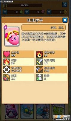 《球球战争》中卡牌有3种类型:部队、法术、建筑;品质分为4种:从低到高依次为:普通、史诗、稀有和传奇。