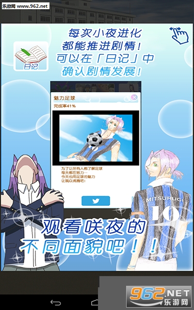 本作为一款以人气恋爱文字游戏《学园帅哥》的人气角色美剑咲夜作为主角,玩家要帮助游戏中的角色和不同的足球帅哥进行恋爱,游戏中更有不同的游戏玩法等你去游戏中进行体验。