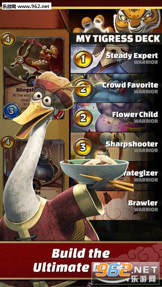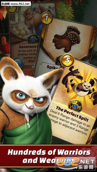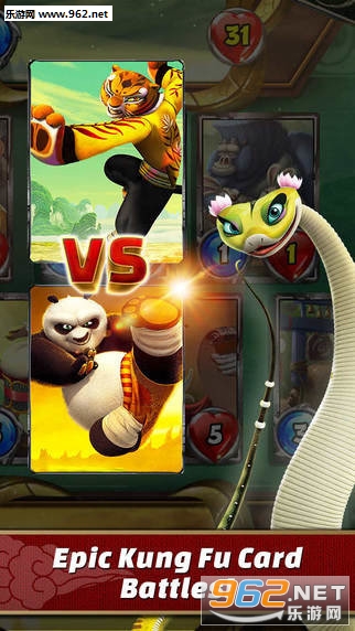 功夫熊猫:命运之战是由其官方授权发行的一款集换式卡牌对战手游,游戏采用大量电影原画制作,精心打造数百张角色,装备,技能卡牌,玩家可以自行收集并组成卡组进行战斗,类似‘游戏王’与‘炉石’的结合玩法,让你与神龙大侠‘阿宝’一起展开新的对决。