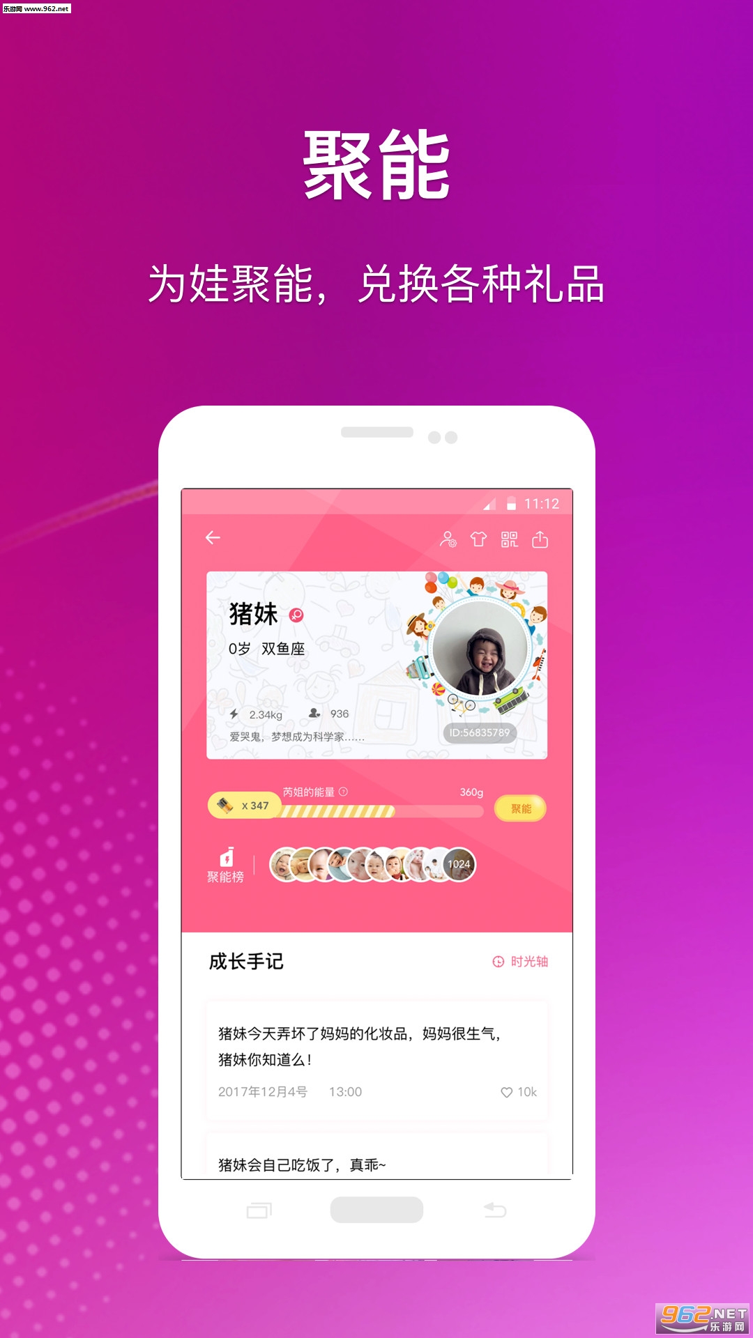 家人、亲友、粉丝为娃的成长一起聚能,能量可兑换各种礼品。
