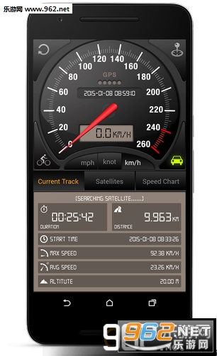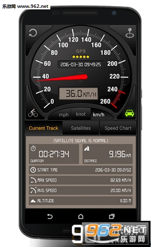 GPS仪表盘 可以追踪速度、距离、时间、位置等,并可得到启动时间、耗费时间、距离、平均速度、最大速度和高度等信息。