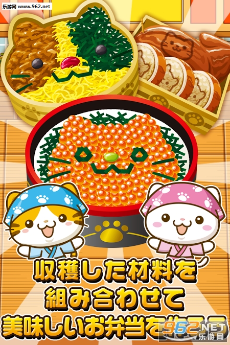 《猫咪的便当屋》《ねこのお弁当屋さん~にゃんこ達と一緒にお店を盛り上げよう!~》是一款模拟农场类游戏。玩法非常简单休闲,从农场收获食材制作成各式各样的便当出售。和可爱的猫咪一起打造小镇第一的便当屋吧!