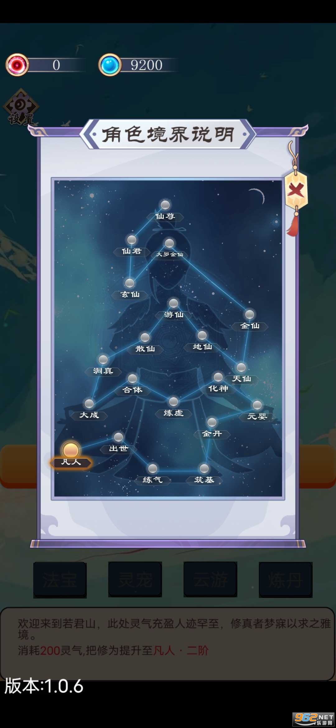 超凡修仙之旅一款仙侠题材的修真、高自由度的修仙小游戏,踏入修仙之路,体验修仙的快乐,升级强化你的装备,玩家可以通过打坐升级自身等级,升级到一定程度可以解锁灵宠,丹药之类的装备,升级灵宠之类的装备强大伙伴!多方位提升你的实力,快来打开游戏一起升级吧。