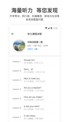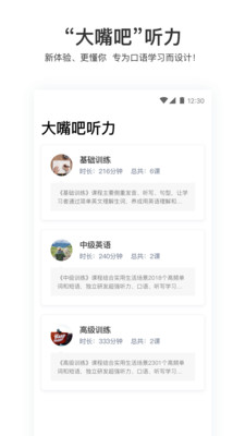 针对不同英语能力的学习者,大嘴吧听力提供不同的学习场景和素材。