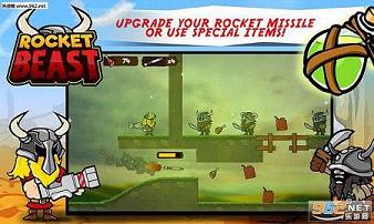 并在路上收集烤猪腿等食物来增加积分。需要注意的是,玩家控制的并不是自己角色,而是火箭炮,只有让火箭消灭关卡中所有的敌人才可以通过关卡。