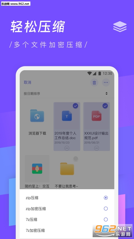 3、然后点击“压缩”选择对应的压缩格式以后,app就会对文件进行压缩了。
