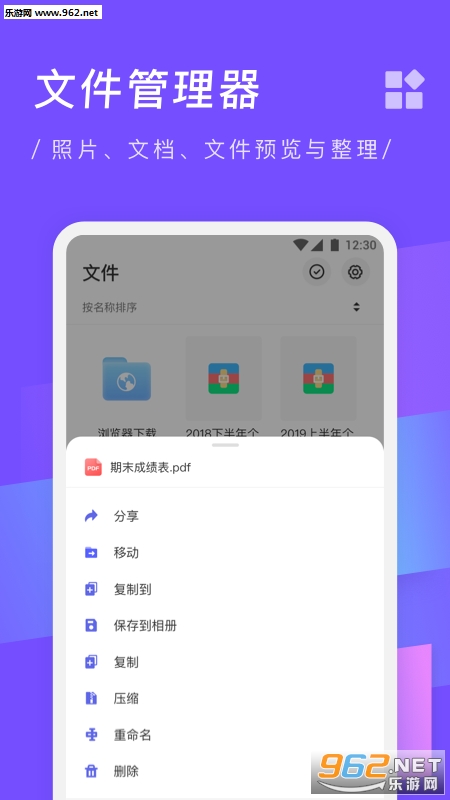 3.文件管理:将手机上的图片视频和文件集合在一起预览、整理;同时支持从本地文件系统中添加文件;
