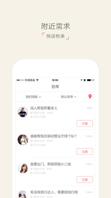 《帮帮》是一款为附近人群提供便利的有偿服务软件,软件用户广,受众面宽,用户通过这款软件发布的简单任务信息能够让最熟悉的人来解决,还能找人陪聊,一起唱歌,一起打游戏,上帮帮,这里全都有。