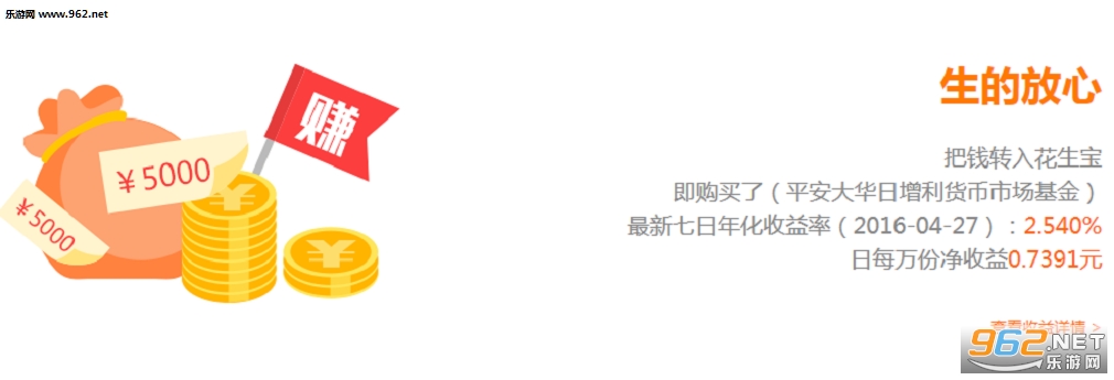 2、生的放心:把钱转入花生宝,即购买了(平安大华日增利货币市场基金),最新七日年化收益率2.480%,日每万份净收益0.7323元;