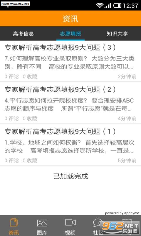该应用包括热点话题、备考资料、志愿填报、生活指导、出国留学等全方位的最新资讯。更包括图片、视频共享和论坛交流版块。高考宝典,助您高效备考,减负提分。
