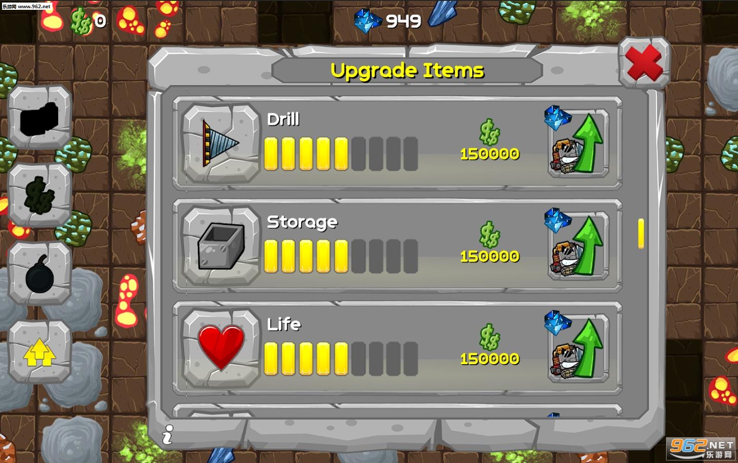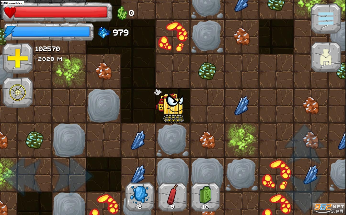 这款游戏轻松简单又很容易让人上瘾的挖掘类休闲益智游戏,玩家可以操作一个长相可爱的挖掘机器人,深入地下世界,挖出各种贵重矿物诸如黄金,钻石,红宝石;将挖来的矿物卖掉赚钱,用来升级自己的各项功能,以探索更深的地下世界。不过小心,地下同样有危险和陷阱在等着你,你能避过危险赚得金钱么?来试试吧!