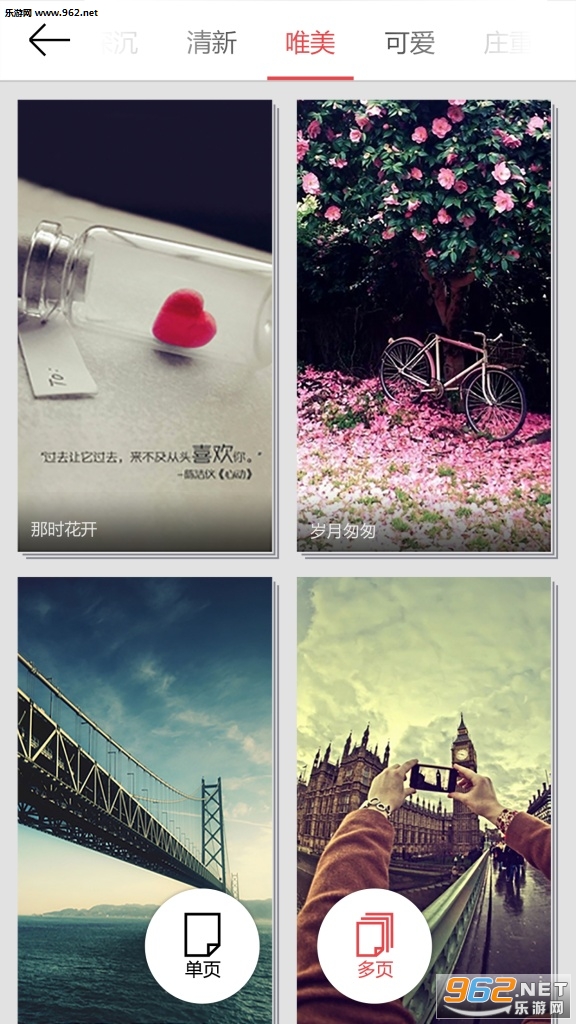 页未央App,一款由新浪倾情打造的移动端H5创意制作工具。设定一个场景,挑选一套模板,键入两行文字,替换几张图片,搭配一曲音乐,一分钟即可实现你的情感表达诉求。