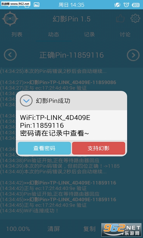 《幻影Pin》是一款手机端的wifi密码破解工具,目前真正能XXWIFI方法中,跑PinXXWIFI是最高端有效的方法了,因为此方法无视密码难度,但多年以来此方法得有电脑、外置网卡,很不方便,而幻影WIFI-Pin使用幻影开发的核心,仅需要一部已ROOT的手机,轻轻松松跑PinXXWIFI,由于非采用Reaver核心,所以没有网卡限制。