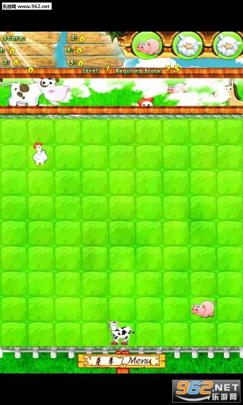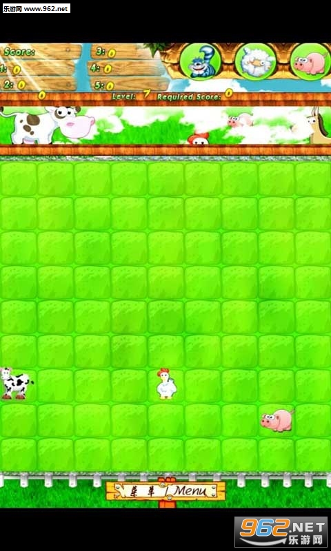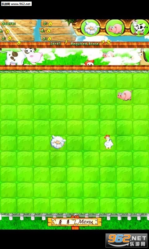 动物每次出现三个,原地等候命令。移动小动物,把五个同类动物连成一条线(同行或同列或对角线),他们就结伴回家啦。