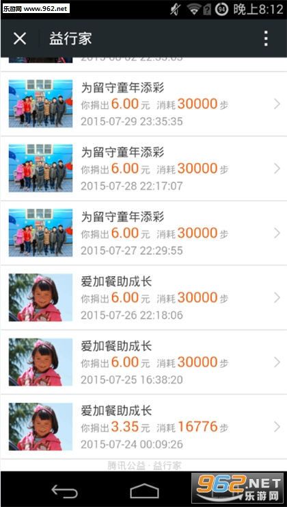 仅仅刷步数还是不够过瘾吧?运动还推出了益行家活动,可以用每天的步数换取爱心捐款。有了运动作弊大法,我们可以每天在家随便走几步然后换取爱心捐款(如图所示)。