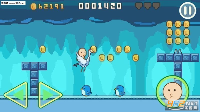 使用2段跳跃与各种道具来收集「宝石」吧!