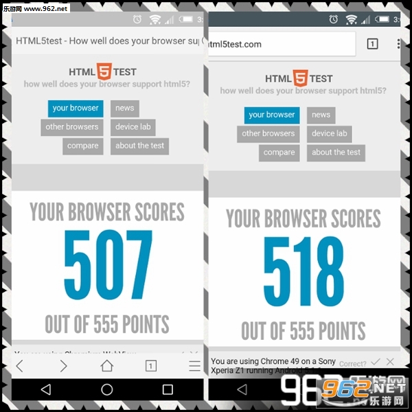 同时,由于采用Chrome内核,Via浏览器打开网页的速度也毫不逊色,并且对时下流行的HTML5支持较好,在HTML5测试中,Via浏览器得到了507分的成绩,而作为对比的Chrome浏览器则拿到518分。