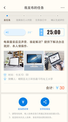 【轻松一键发布任务】以“任务”的形式发布求助事项,可通过语音、文字、图片等多种形式进行描述,一键发布轻松便捷,召唤“超人”为您服务