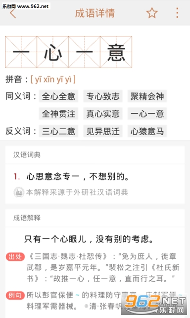成语字典是快快查推出的一款权威、免费、离线的汉语词典应用。收录成语近4万条,整合20本专业版权辞书,提供百万字详细释义。成语词典不仅提供详尽易懂的成语解析,还摘录大量经典著作中的例句,助您理解成语涵义、了解成语源流;更有同义词、反义词、诗词名句、语法解析等信息,使之不仅可以作为考试学习的工具书,还是深入研究成语文化的好帮手。