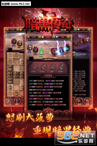 《暗黑传奇》这是一款高度还原暗黑系列的放置RPG网络手游,将经典的暗黑类游戏的数值、游戏框架完美重现,同时是全球首款半放置游戏,包罗万有的新合成玩法!全新的挂机玩法!回到游戏获得的满足感!在这里所有地图随机生成,神秘冒险的副本,耳熟能详的BOSS,惊艳全服的装备!在这里,你探索惊心动魄的冒险世界,搜寻远古遗迹中的神器!