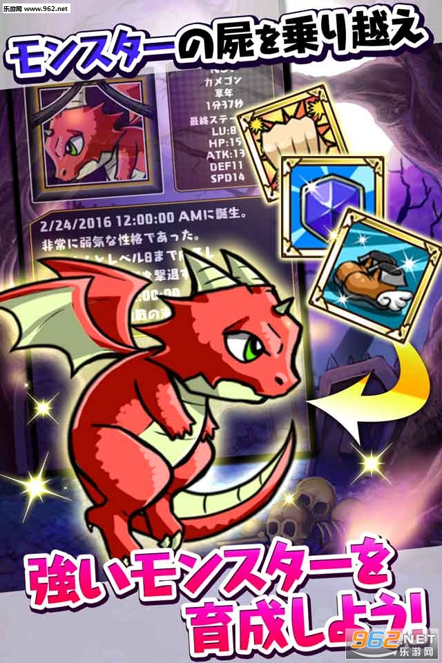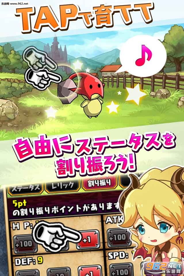 游戏只需要简单的点击操作即可育成魔物,玩家可以自由分配魔物的属性点与勇者战斗!踩着牺牲在勇者剑下的魔物的尸体来育成超级强大的魔物吧!