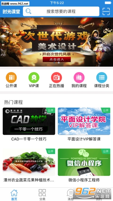 2、专注于直播在线教育和即时的互动教学体验,涵盖多个类别多个机构的优质课程,聚集海量的精品课程资源;