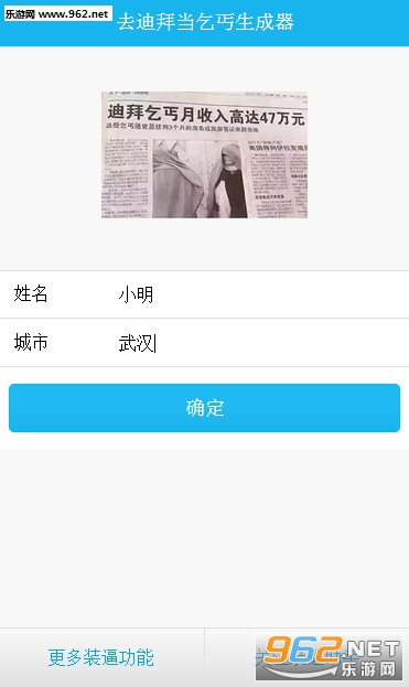《去迪拜做乞丐图片生成器》是一款为小伙伴们打造的装逼神器,最近有一条新闻非常的火热就是在迪拜的乞丐月入47万,你没看错就是47万,小伙伴们的心里是不是有一万只草泥马跑过,你想不想去迪拜做乞丐呢?使用本款软件你可以轻松的生成一张去迪拜的车票,可以发到朋友圈中进行装逼。