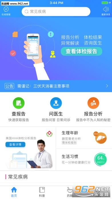 1、手机查询体检报告。快速、方便查询体检报告,提供全新差异化服务。