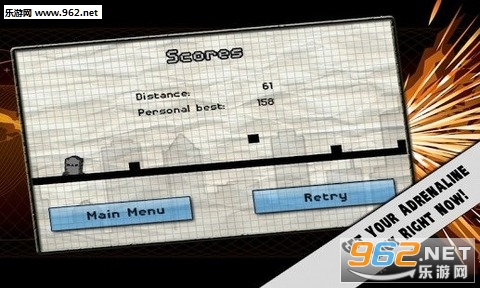 直线暴走Line Runner这款颇具挑战的小游戏来自Robert Szeleney,这款游戏是从iOS平台移植而来,支持系统为安卓1.6以上,在苹果设备上受到推崇的玩家很多,全世界共有超过六百万的玩家每天都在排行榜上厮杀。游戏十分简单,玩家需要控制火柴人跳跃障碍,前进的距离越远,分数越高;点击左边屏幕,火柴人会滚动;点击屏幕右边,火柴人会向上跳跃;玩家需要根据障碍物的不同,依靠自己的反应成功越过障碍,相当有挑战性。