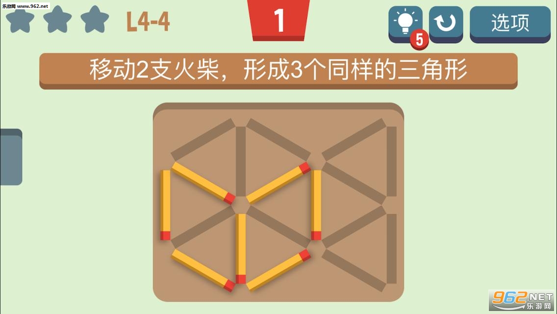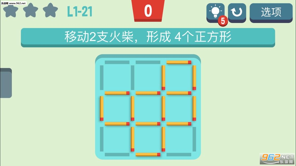 移动火柴是一款经典的解谜游戏,通过移动、添加或拿掉火柴来找到正确的结果!谜题包括完成方形、三角形及解数学方程式。