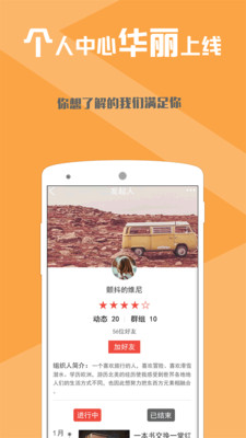快速联系和认识朋友、轻松参与活动,让聚会更简单更便捷!聚会就在一瞬间!