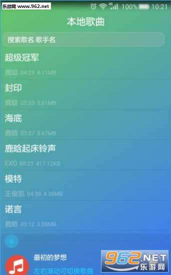3、友好的滑动切换歌曲,下一首上一首随时切换;