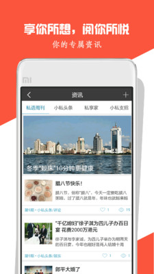 如果你暂无需求或者一时无暇开创新事业,那也没关系。小私生活为你量身定制的专属资讯,让你享所想、阅所悦。你只需下载一个APP,即可免费阅读各类专家原创或编辑的关于健康、育儿、烹饪、婚恋、美容、健身、心理等20大门类的实用智慧和生活技巧。站在巨人的肩膀上,你的生活将不再平庸。
