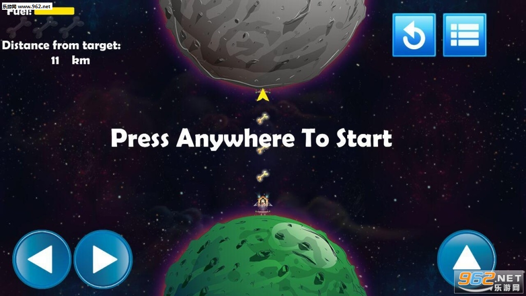 帮助Gravee完成各种不同的太空任务吧!操控着他的飞行器离开家到达目的地。Gravee在每个关卡里都要面对着不同的困难,而你的目标只有一个,就是让飞行器降落到目的地!