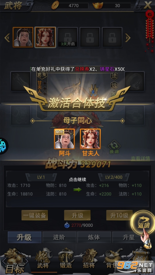 驻防状态的武将不能够上阵、不能分解、也不能作为进阶的材料