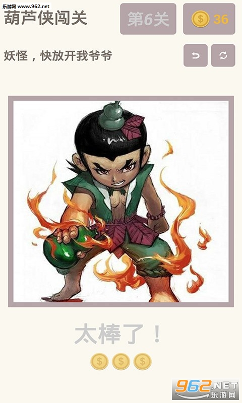 葫芦侠闯关,这是一款拼图游戏,将7个葫芦娃完整拼好就可以进入下一关。