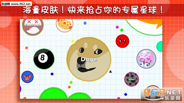 游戏采用的是2D平面设计,玩家所操作的就是一个球球,这些球球可以根据玩家的个人喜好自定义各式各样的外观,像是太阳,地球,火星或者是篮球,足球,台球,也可以是个西瓜或者是一个恶魔的造型,总而言之画面的华丽壮观取决于玩家之手。游戏的主画面是一个黑色的空间,里面散落了无数的小球球,这些小球球密密麻麻,玩家可以让自己的球球一扫而过吃光这些小球,那种清除干净的快感绝对大快人心。