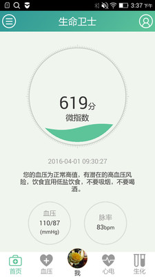 《生命卫士》,是一款先进的手机健康管理软件,支持目前多种常用的医疗设备,血压仪,心电图等,实时掌控身体状况,快速联网资讯,国内最具影响力的专家坐镇,为用户身体健康设下安全保障。