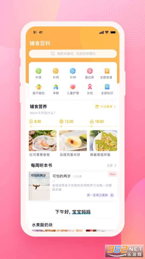 【宝宝辅食】在这里,资深妈妈帮你找到各年龄段的宝宝食谱和儿童菜谱:婴儿辅食、幼儿辅食、新生儿辅食、补锌辅食、补铁辅食、补钙辅食、蛋白质辅食、DHA辅食、维生素辅食、膳食纤维辅食、调味辅食制作···········常见的鱼虾、鸡蛋、豆腐、土豆、南瓜、山药、奶酪、米粉等美食都可以萌萌煮成营养的宝宝辅食,辅食添加不再愁!