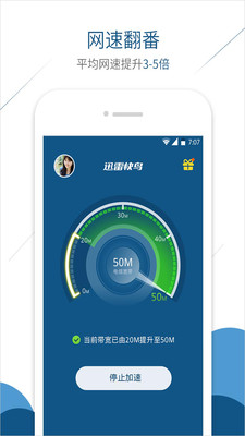 《迅雷快鸟》,能够帮助用户解决手机网速慢的问题,一键加速,让网络起飞,告别网络质量差,软件通过和网络运营方合作,利用高科技打造的智能网络提速,给用户飞一般的感受。