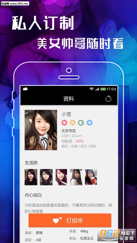迅速定位身边单身美女帅哥,不闲聊直接约! 同城约会,摆脱单身,告别寂寞的好选择!激情约会,不再独自忍受夜夜孤独与寂寞。每个寂寞的夜晚找到Ta来陪伴,花费几秒解决你的燃眉之急!在轻松、快乐的时间里体验美妙的爱情;在温馨、浪漫的环境中找到心灵的归属;赶快结束单身,找个情人去约会吧。 约会成功,分享到、、QQ空间炫耀下!